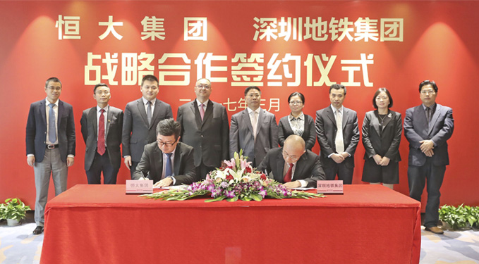 3月16日,恒大集团与深圳地铁集团战略合作签约仪式在恒大中心举行,恒大集团董事局副主席、总裁夏海钧和深圳地铁集团董事长林茂德以及深圳市国资委领导等出席。双方将在城市建设、轨道交通等方面开展战略合作。