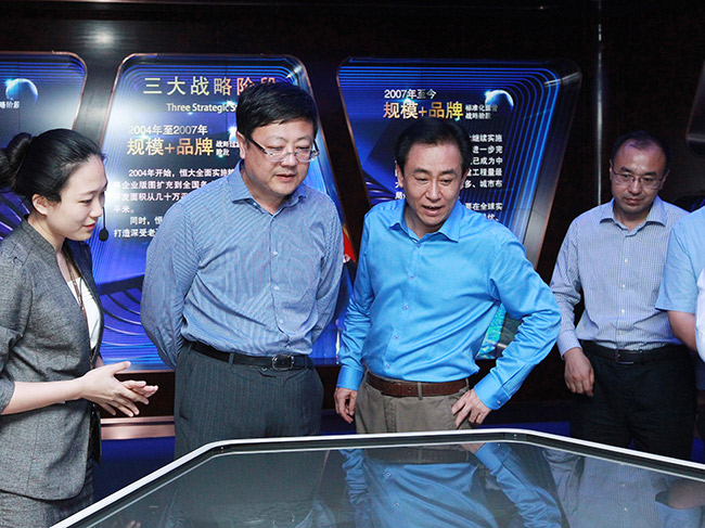 清华校长陈吉宁(左二)一行参观恒大展示中心