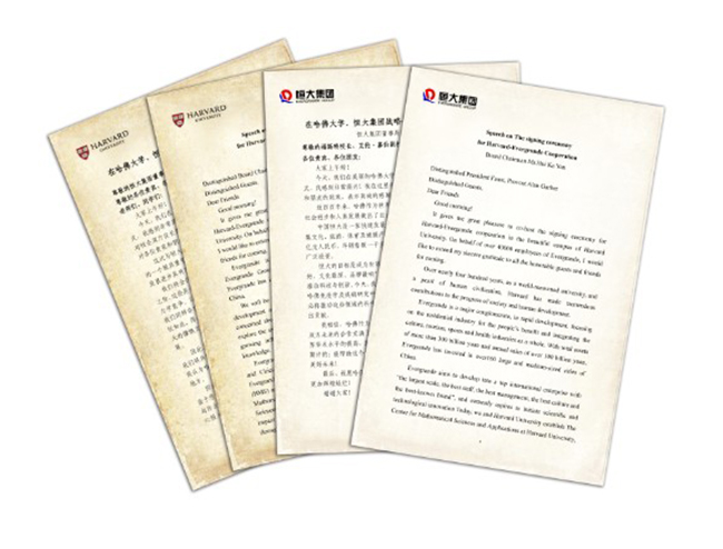 哈佛校长福斯特与董事局主席许家印讲话稿