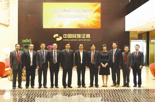 8月17日,恒大集团与中国民族证券有限公司战略合作签约仪式在京举行,恒大集团董事局主席许家印,中国民族证券有限公司董事长赵大建,党委书记岳文海出席了签约仪式。恒大集团董事局副主席、总裁夏海钧与中国民族证券有限公司总裁罗农平分别代表合作双方在战略合作协议上签字。